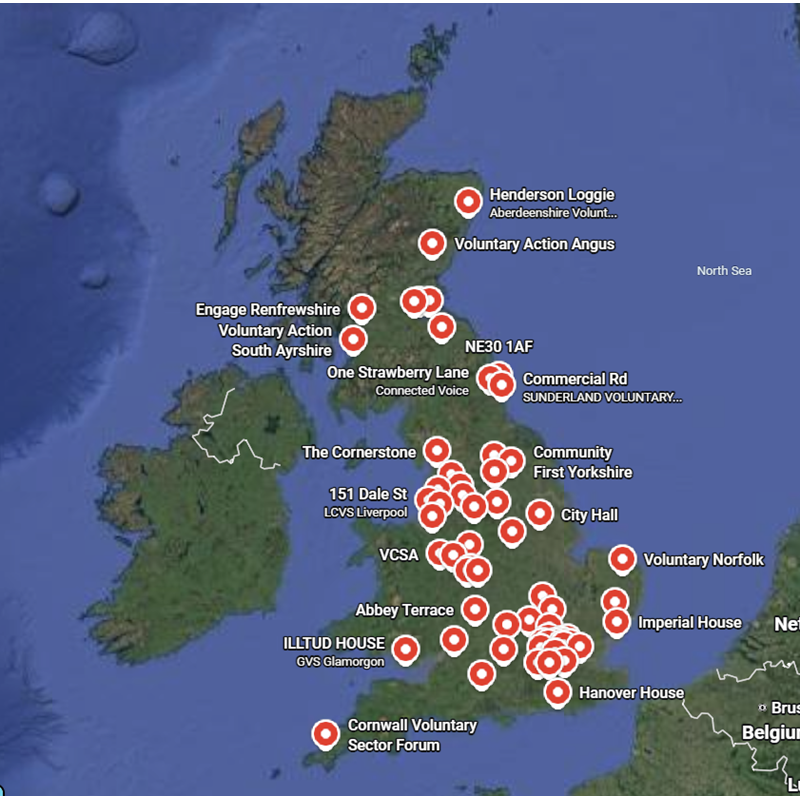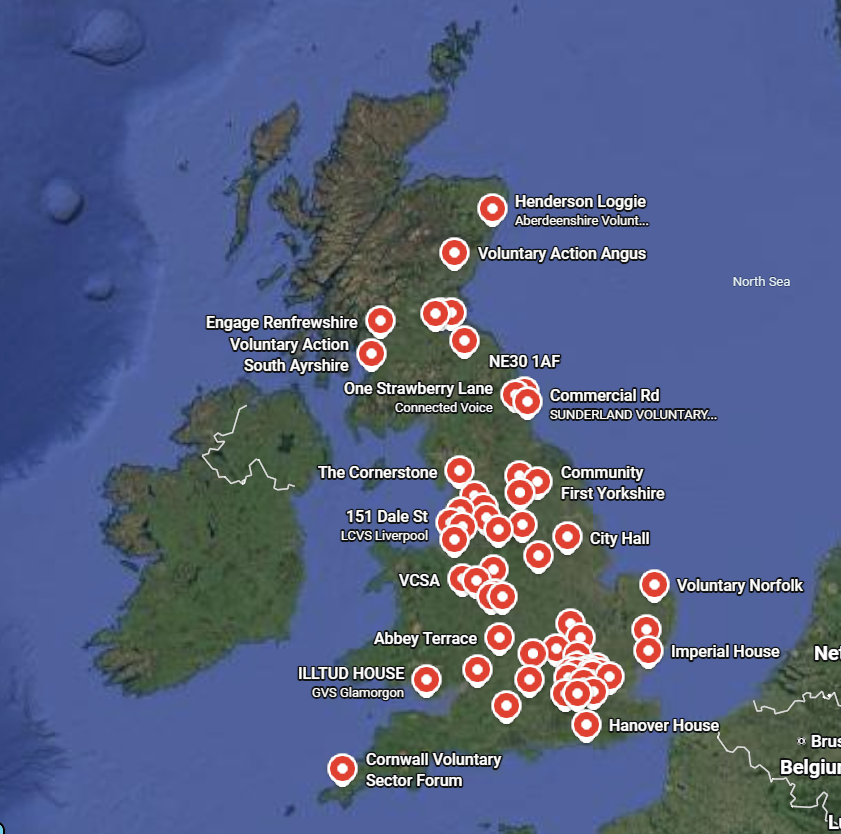 We proudly partner with 64 CVS organisations across the UK. These organisations play a vital role as infrastructure bodies, supporting and strengthening the work of thousands of community groups, charities, and social enterprises within their areas.